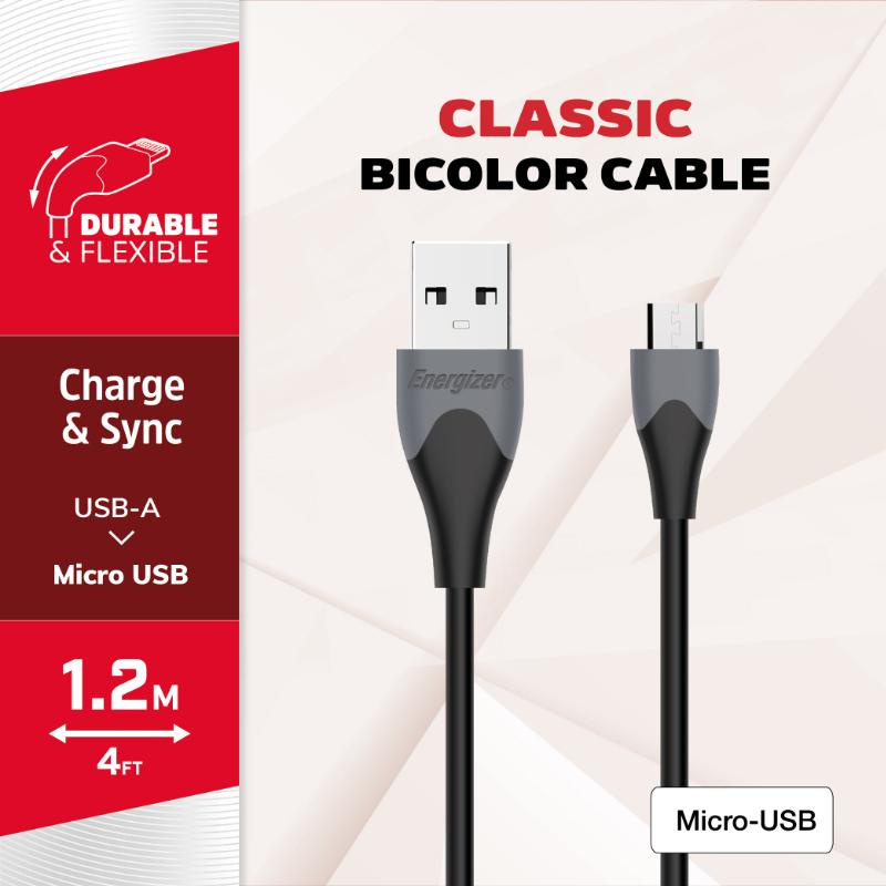 Kabel Energizer Classic do ładowania i transmisji danych o długości 120 cm, wyposażony w złącze USB-A na Micro USB.Kabel jest bardzo elastyczny, wytrzymały i odporny na splątanie. Przewód umożliwia przesyłanie danych z prędkością 480 Mb/s.