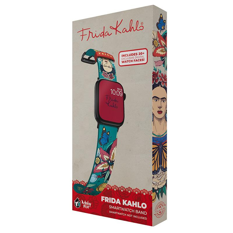 Pasek inspirowany meksykańską malarką Fridą Kahlo z dedykowanymi tarczami dla Apple Watch to prawdziwa gratka dla wszystkich miłośników dzieł znanej artystki. Pasek wykonany został z wysokiej jakości silikonu odpornego na pot oraz promienie UV. W zestawie znajduje się komplet konektorów do zegarka Apple w rozmiarze 38/40/41mm oraz 42/44/45/49mm. Pasek można również zainstalować do smartwatcha Android z gniazdem 22mm.Po ściągnięciu aplikacji MobyFace dla iOS, użytkownik może zgrać dedykowane tarcze na zegarek Apple Watch. W tym celu należy zeskanować kod QR umiejscowiony pod gąbką zabezpieczającą pasek w firmowym opakowaniu.