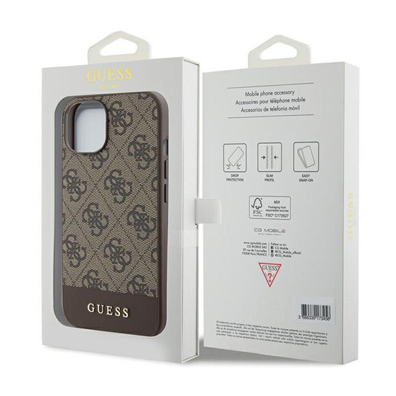 Guess 4G Bottom Stripe Metal Logo Collection - Etui iPhone 15 (brązowy)