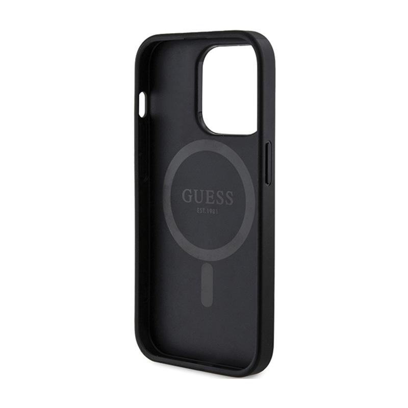 Guess 4G Collection Leather Metal Logo MagSafe - Etui iPhone 15 Pro Max (czarny)