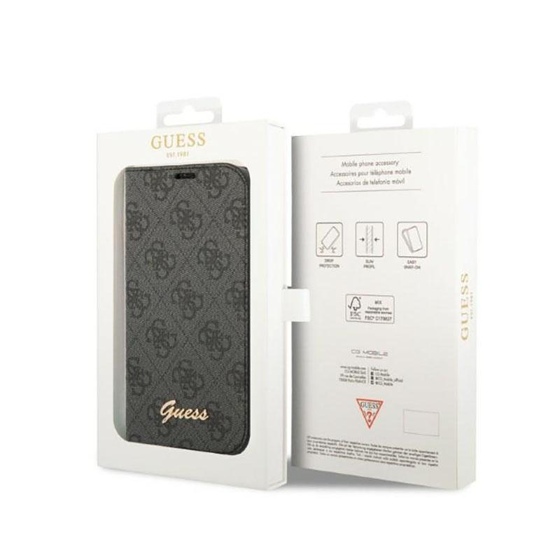 - Guess 4G Metal Camera Outline Booktype Case to etui przeznaczono do ochrony całego urządzenia przed porysowaniem lub zadrapaniem. Etui charakteryzuje się drukowanymi emblematami 4G oraz złotym logo Guess, które umiejscowiono na bardzo przyjemnej w dotyku