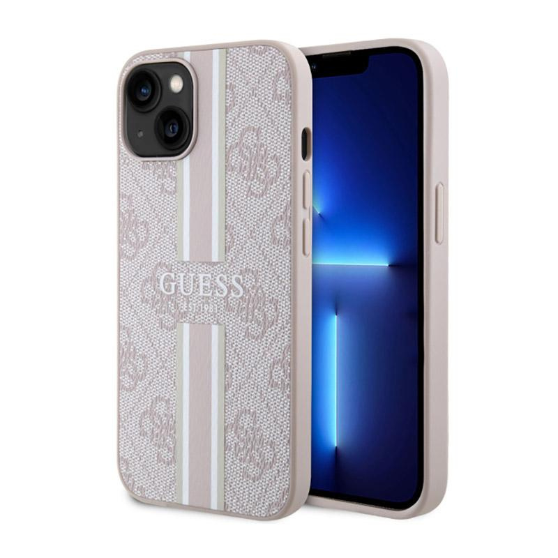 Guess 4G Printed Stripes MagSafe charakteryzuje się jednym z bardziej znanych motywów używanych przez Guess. Cały tylny panel etui pokryto emblematami 4G, które umiejscowiono na bardzo przyjemnej w dotyku fakturze saffiano oraz nadrukowane logo Guess umieszczone na wyróżniającym się pasku w kolorze etui.Obudowa zapewnia dostęp do wszystkich klawiszy funkcyjnych, gniazd i portów telefonu nie ograniczając jego funkcjonalności, dzięki czemu można w pełni korzystać ze swojego smartfona. Etui posiada wewnątrz magnetyczny pierścień kompatybilny z akcesoriami MagSafe, gwarantując łatwe i szybkie ładowanie.