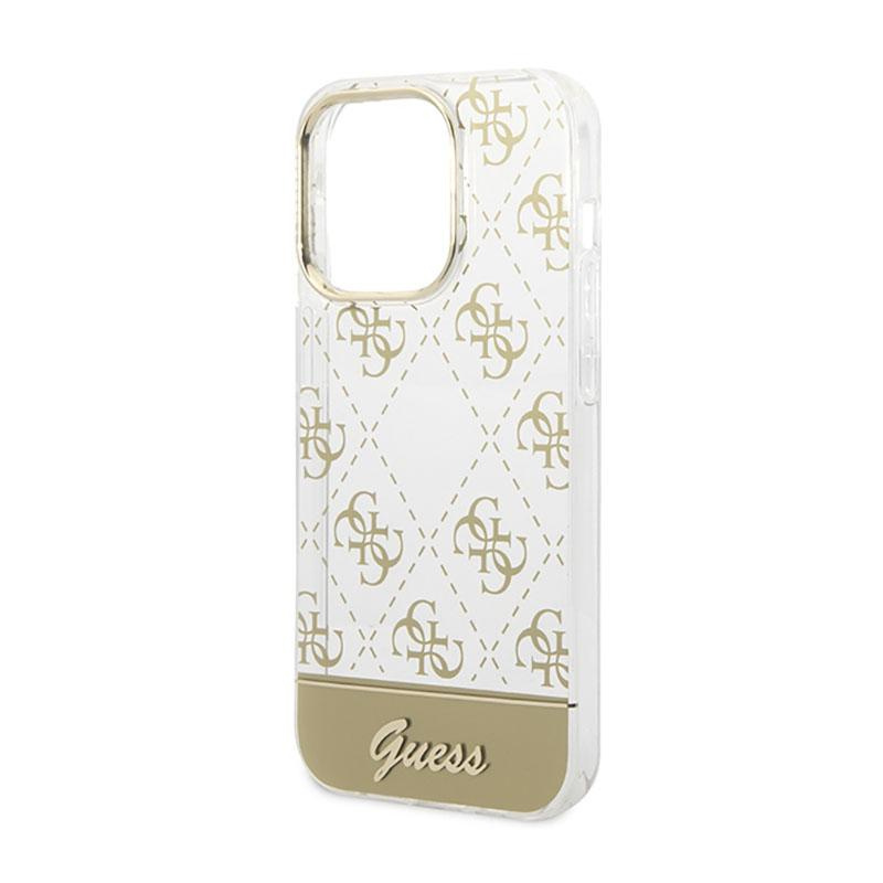 Guess 4G Stripe Script Logo Electroplated Pattern – Etui iPhone 14 Pro Max (złoty)