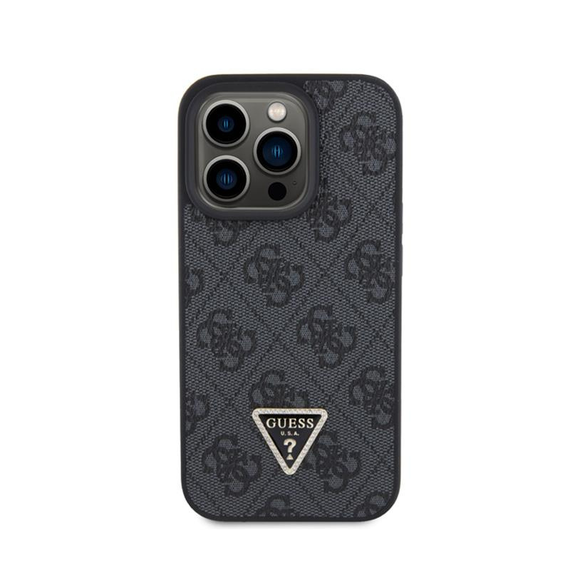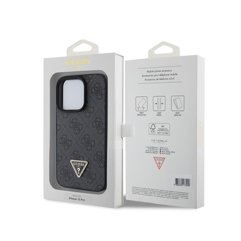 Guess Leather 4G Triangle Strass - Etui iPhone 15 Pro (czarny)