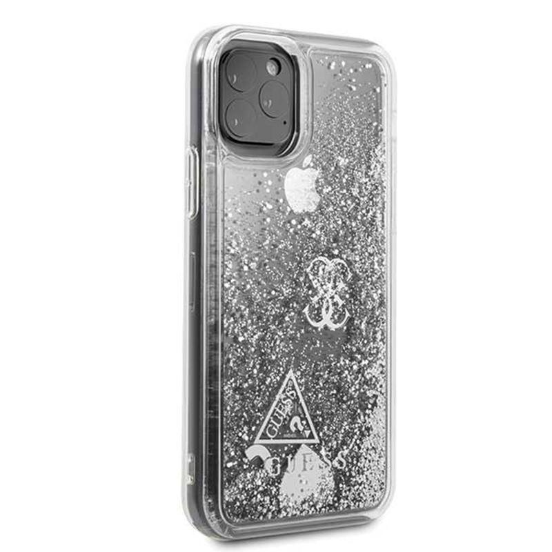 Guess Liquid Glitter Hearts - Etui iPhone 11 Pro (srebrny)