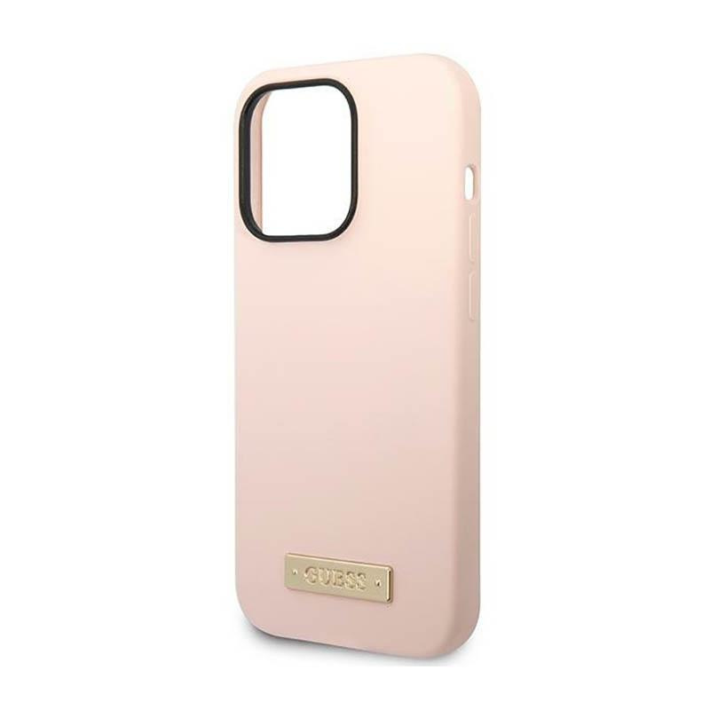 Guess Silicone Logo Plate MagSafe - Etui iPhone 14 Pro (różowy)