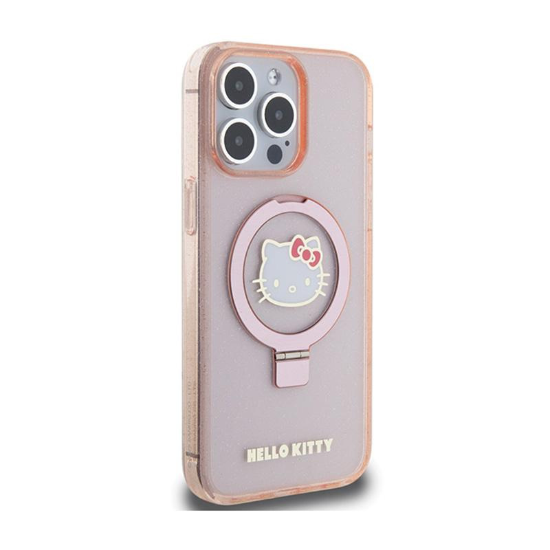 Hello Kitty Ring Stand Glitter Electrop Logo MagSafe - Etui iPhone 15 Pro Max (różowy)