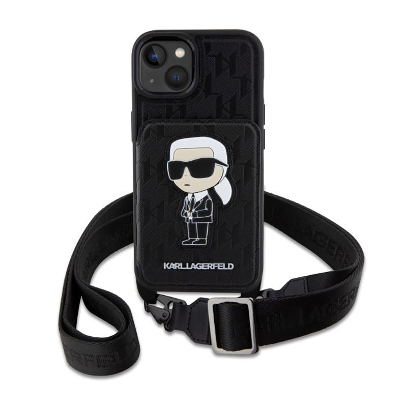 Karl Lagerfeld Crossbody NFT Saffiano Monogram Ikonik - Etui iPhone 14 Pro (Czarny)