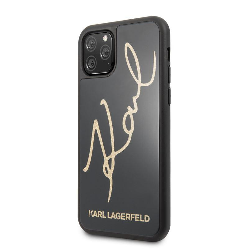 Karl Lagerfeld Double Layers Tempered Glass Glitter Signature Case - Etui iPhone 11 Pro (czarny)