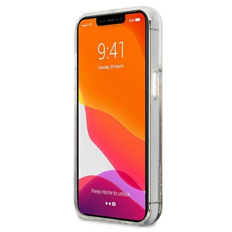 Karl Lagerfeld Liquid Glitter Karl & Choupette Head etui przeznaczone do ochrony przed porysowaniem iPhone’a. Wykonane z wytrzymałego TPU, które cechuje wysoka przezroczystość oraz smukłość. Smartfon bezpiecznie spoczywa w perfekcyjnie wykonanej konstrukcji, która osłania go z tyłu oraz po bokach w żaden sposób nie psując estetyki urządzenia.Ozdobione grafiką projektanta i kotki Choupette, dookoła której przemieszcza się mnóstwo błyszczącego, złotego brokatu, przy najmniejszym ruchu opływa cały front etui mieniąc się i błyszcząc.