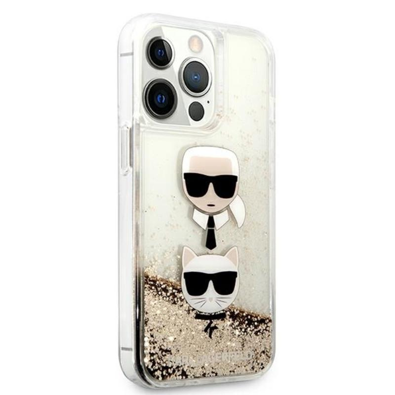 Karl Lagerfeld Liquid Glitter Karl & Choupette Head - Etui iPhone 13 Pro (złoty)