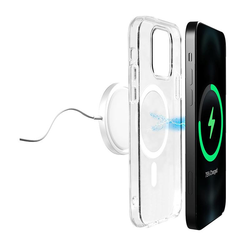 Puro LITEMAG to przezroczyste etui wykonane z elastycznego materiału, które zostało wyposażone w magnetyczny pierścień kompatybilny z akcesoriami MagSafe®, umożliwiając tym samym szybkie i łatwe ładowanie.