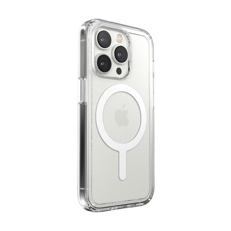 Speck GEMSHELL® + MagSafe to przezroczyste etui wyposażone w innowacyjną, dwuwarstwową ramkę, chroniąca przed skutkami uderzeń lub upadków i z wbudowanym magnesem, kompatybilnym z akcesoriami Apple MagSafe®.