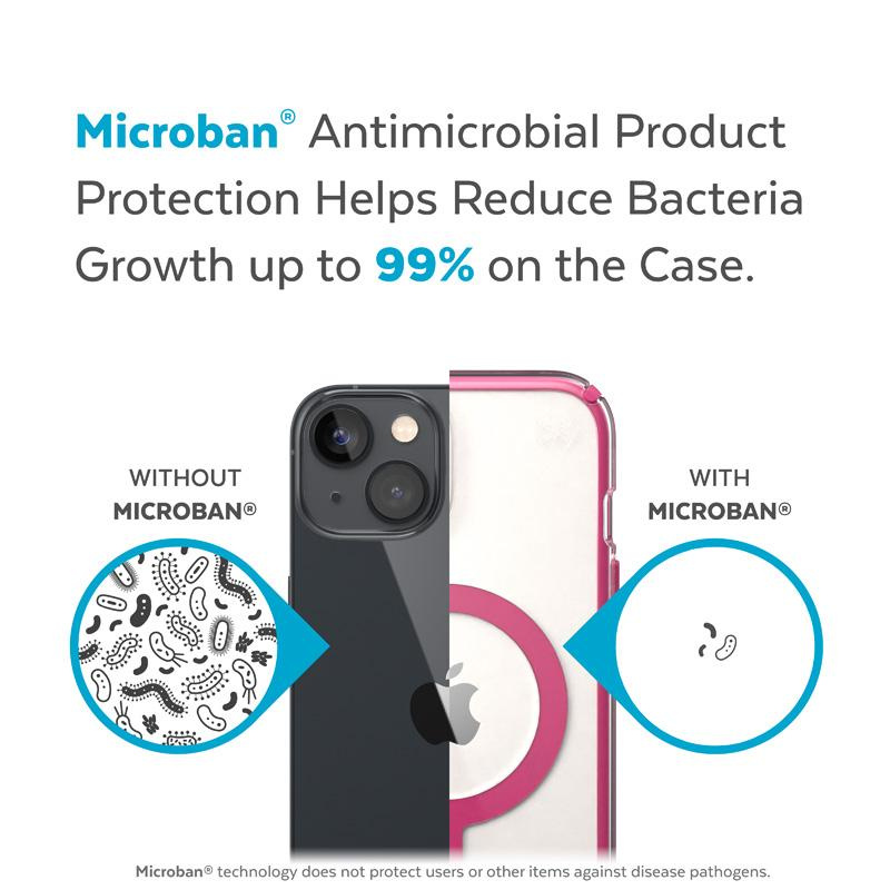 Oryginalna obudowa ochronna Speck oferuje też ochronę antybakteryjną MICROBAN® (światowy lider rozwiązań przeciwdrobnoustrojowych z szerokim portfolio ponad 25 zatwierdzonych technologii). Aktywny składnik wbudowany w strukturę etui powstrzymuje 99% bakterii, które gromadzą się na powierzchni etui. Technologia MICROBAN® zapewnia w ten sposób dożywotnią ochronę przed bakteriami powodującymi plamy i nieprzyjemne zapachy oraz działa na poziomie komórkowych, aby utrzymać czystość obudowy.