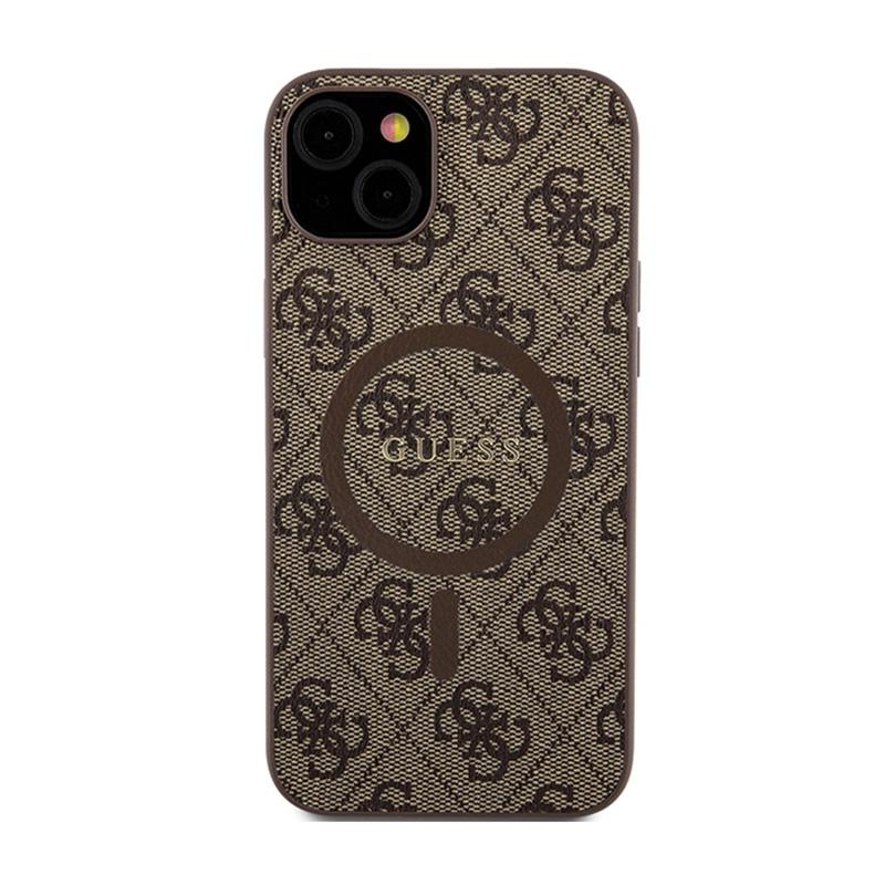 Guess 4G Collection Leather Metal Logo MagSafe - Etui iPhone 15 Plus / 14 Plus (brązowy)