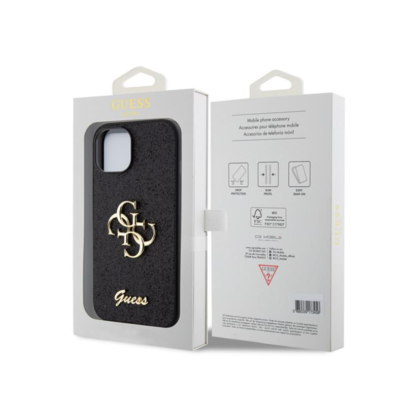 Guess Glitter Script Big 4G - Etui iPhone 15 (czarny)