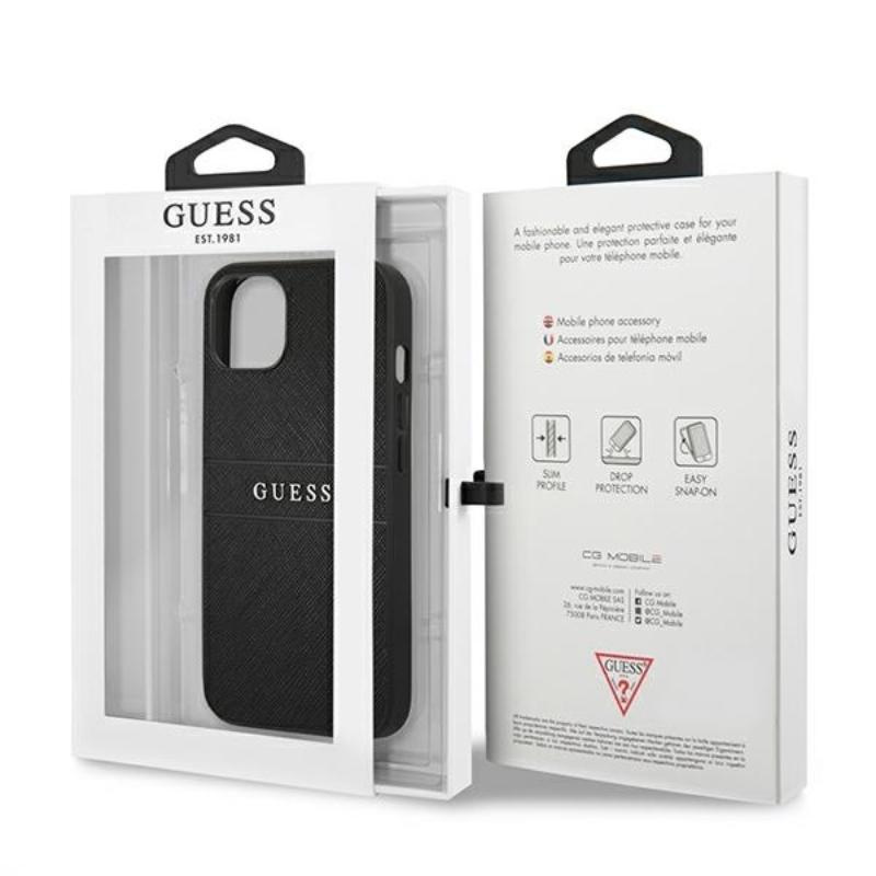 Guess Saffiano Metal Logo Stripes - Etui iPhone 13 (czarny)