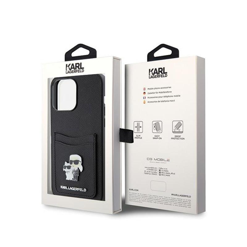 Karl Lagerfeld Saffiano Cardslot Karl & Choupette Metal Logo - Etui iPhone 15 Pro Max (czarny)