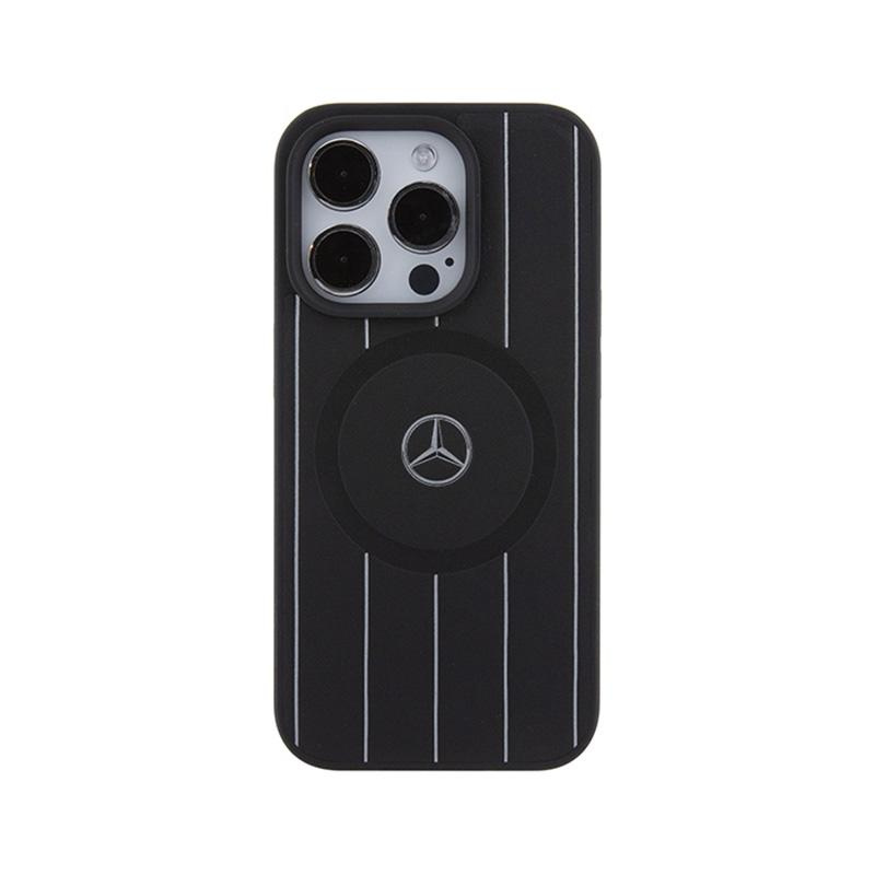 Mercedes Stripes Pattern Leather MagSafe - Etui iPhone 15 Pro (czarny)