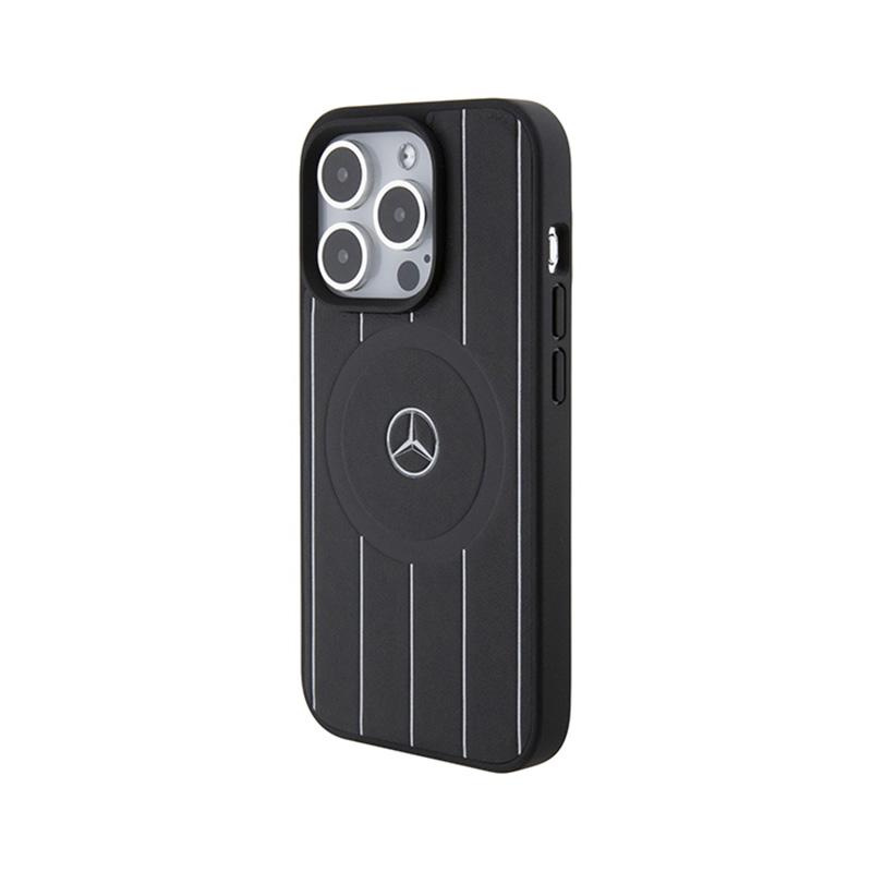 Mercedes Stripes Pattern Leather MagSafe - Etui iPhone 15 Pro Max (czarny)