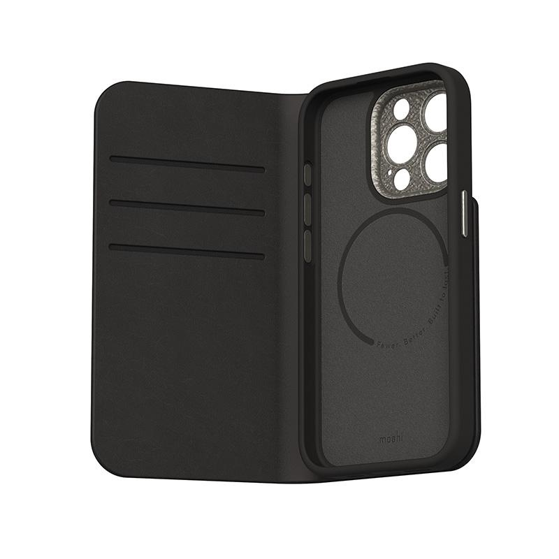 Moshi Overture MagSafe - Skórzane etui 3w1 z klapką iPhone 15 Pro (Midnight Black)