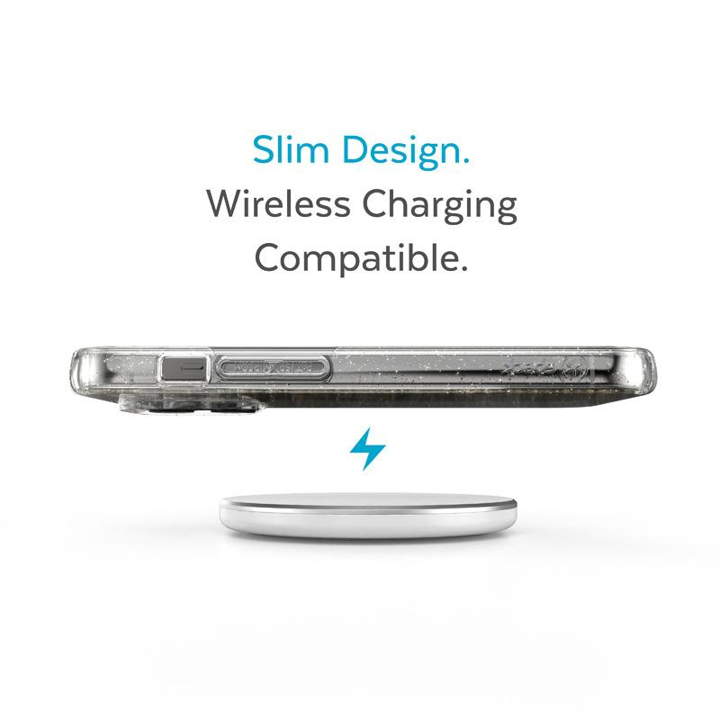 Presidio® Perfect Clear with Glitter to przezroczysta konstrukcja z wtopionymi, błyszczącymi kryształkami, odsłaniająca wszystkie walory estetyczne telefonu.Jednocześnie wykorzystująca najnowszą technologię IMPACTIUM™ Shock Barrier, która chroni telefon przed uszkodzeniami podczas upadku. To wszystko dzięki dwóm warstwom: zewnętrznej, która rozprasza siłę uderzenia oraz wewnętrznej IMPACTIUM™, absorbującej wstrząs. W ten sposób etui skutecznie zabezpiecza telefon i chroni go przed uszkodzeniem. Według przeprowadzonych testów etui wytrzymuje upadek z wysokości prawie 4 m. Ponadto, Speck opatentował w swoich etui system ochrony wyświetlacza, który minimalizuje ryzyko uszkodzenia telefonu podczas upadku ekranem do dołu. Wszystkie produkty Speck są testowane pod kątem odporności na zarysowania, odporność chemiczną oraz precyzyjnego dopasowania, w celu dostarczenia wysokiej jakości etui.Idealnie przezroczysta konstrukcja nie przysłania telefonu a specjalna powłoka zapobiega przebarwieniom i żółknięciu.