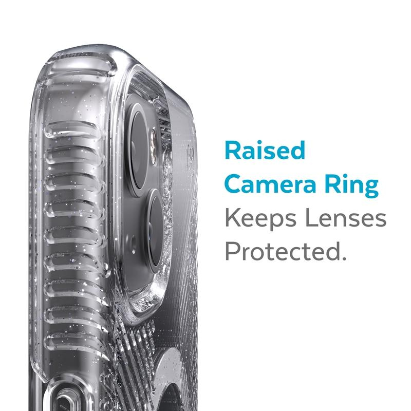 Presidio® Perfect Clear with Glitter + Grips + MagSafe to przezroczyste etui z wbudowanym magnesem, kompatybilnym z akcesoriami Apple MagSafe®.Lśniące kryształki brokatu, odporne na blaknięcie, nadają niezwykłej elegancji.