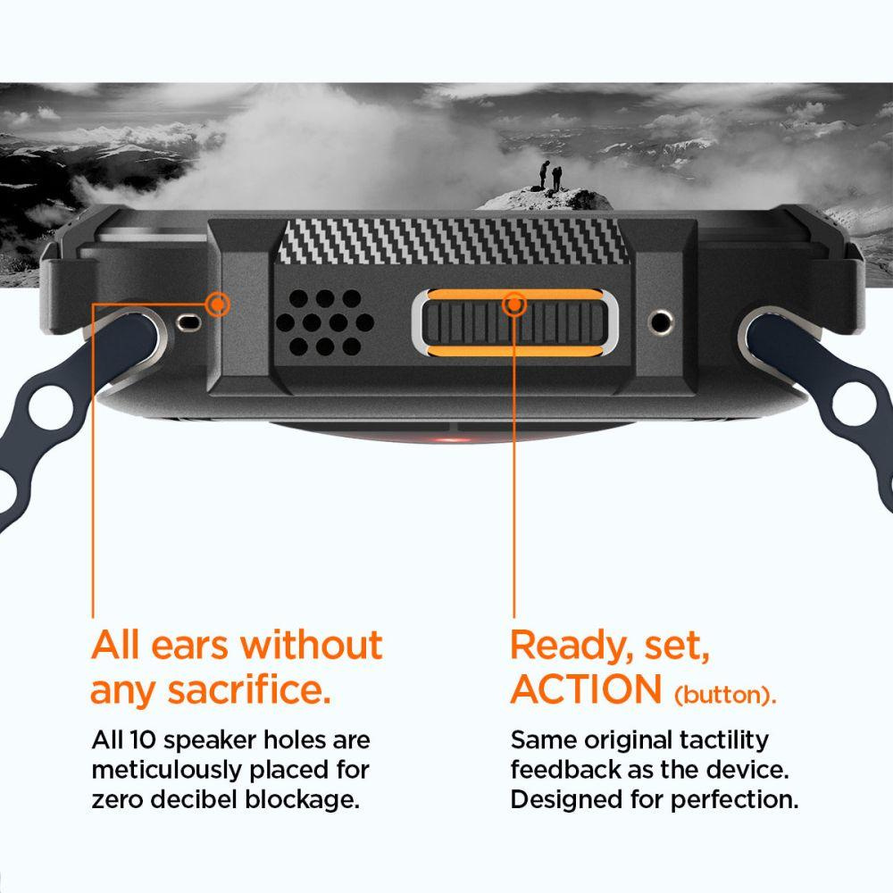 - Spigen Rugged Armor® do Apple Watch Ultra to etui ochronne, którego powłoka został wykonana z poliwęglanu. Uniesione krawędzie chronią przed uderzeniami i zarysowaniami.