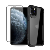 Crong Hybrid Clear Cover - Zestaw etui iPhone 11 Pro (czarny) + szkło hybrydowe 9H