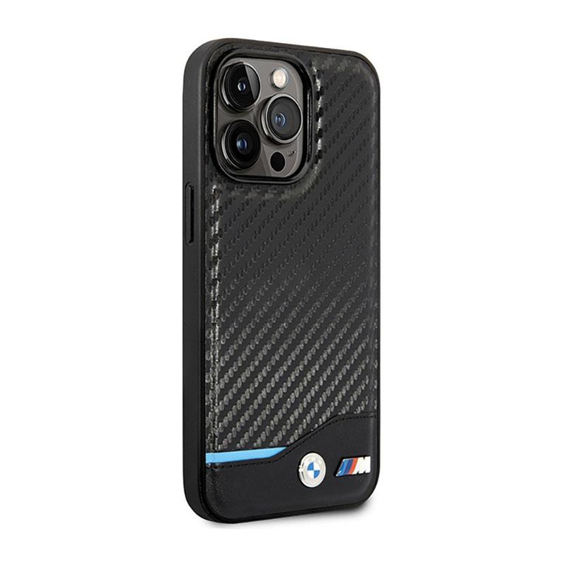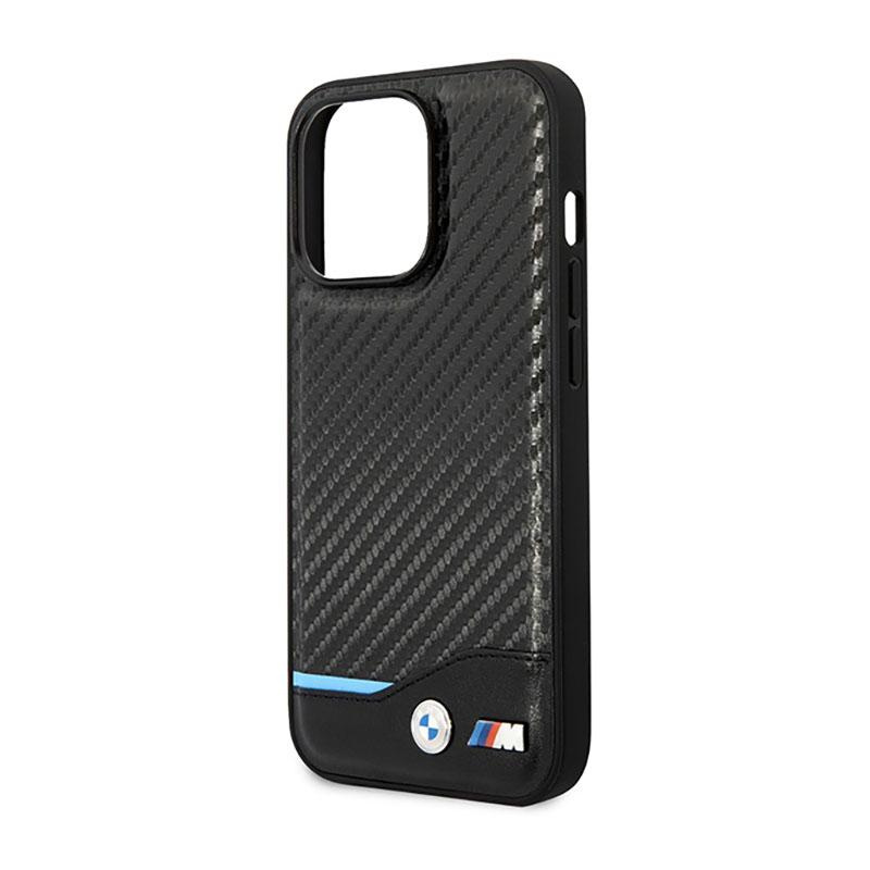 BMW Leather Carbon Blue Line MagSafe - Etui iPhone 14 Pro Max (czarny)