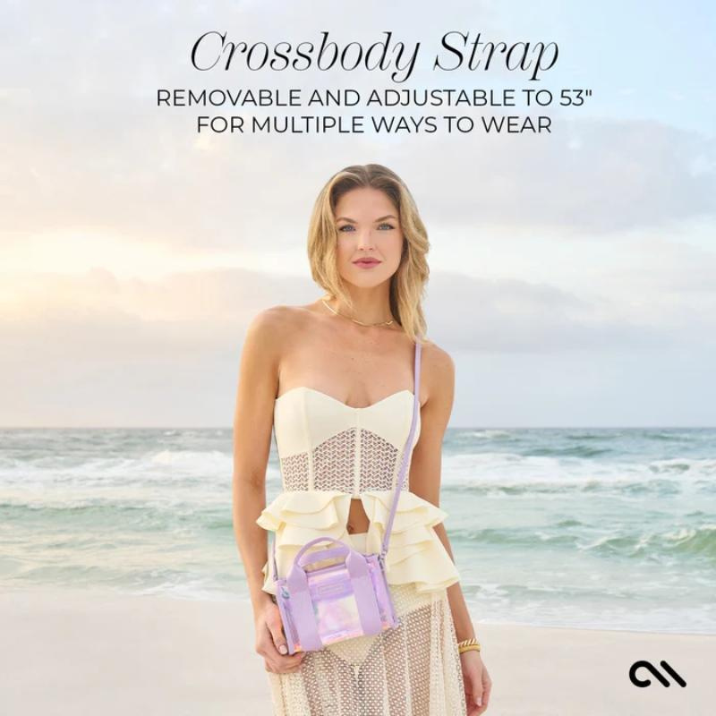 Poznaj Case-Mate Micro Tote Bag – stylową i funkcjonalną torbę, która łączy nowoczesny design z codzienną wygodą. Dzięki kompaktowym wymiarom (20,3 cm x 14,6 cm x 7,6 cm) jest idealnym rozwiązaniem zarówno na co dzień, jak i w podróży.Wykonana z opalizującego materiału z efektem holograficznym, zmienia barwę w zależności od kąta padania światła, nadając jej wyjątkowy, futurystyczny wygląd. Wodoodporna powłoka skutecznie chroni zawartość przed wilgocią i niesprzyjającą pogodą, zapewniając spokój w każdej sytuacji.