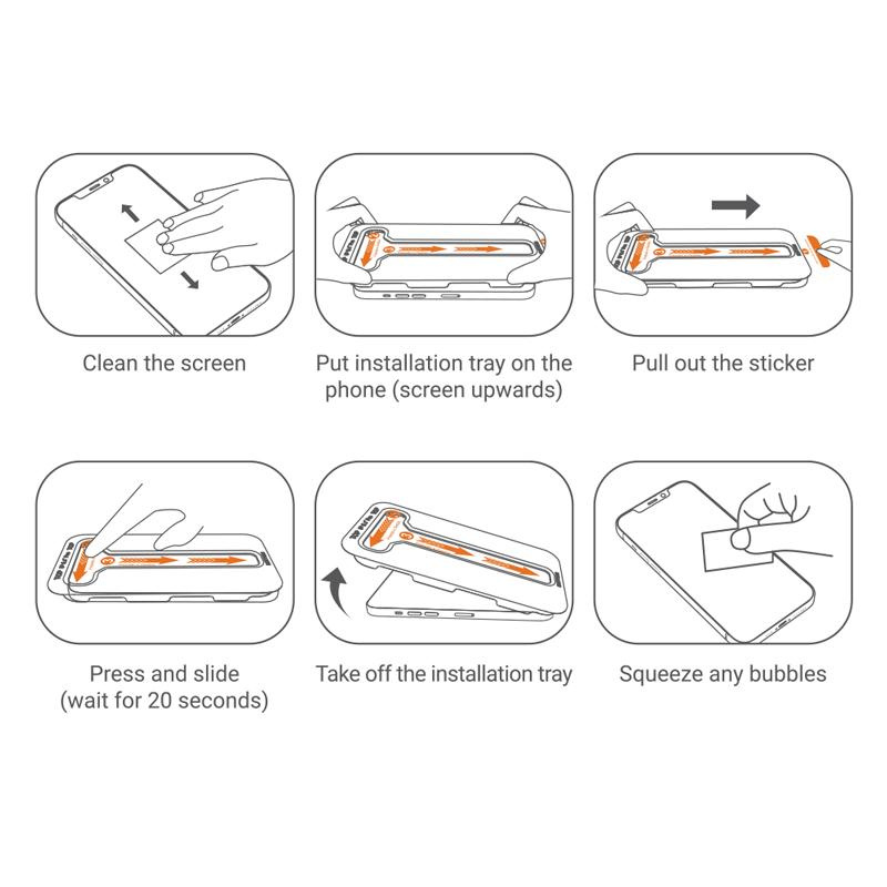 2. Nałóż ramkę instalacyjną z zamontowanym szkłem na przód telefonu