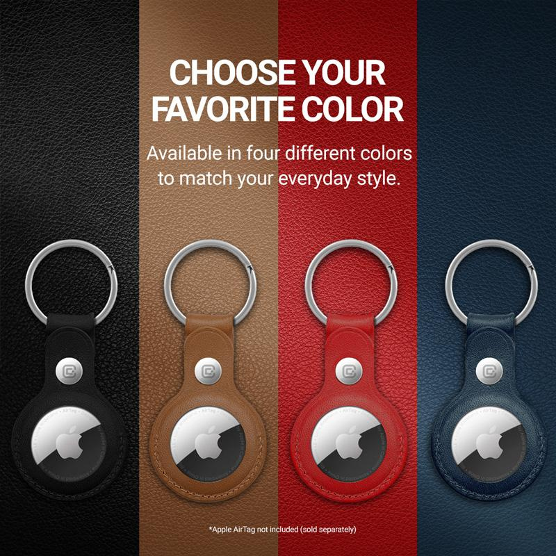 Crong Leather Case with Key Ring – Skórzane etui ochronne brelok do Apple AirTag 1 / 2 (granatowy)
