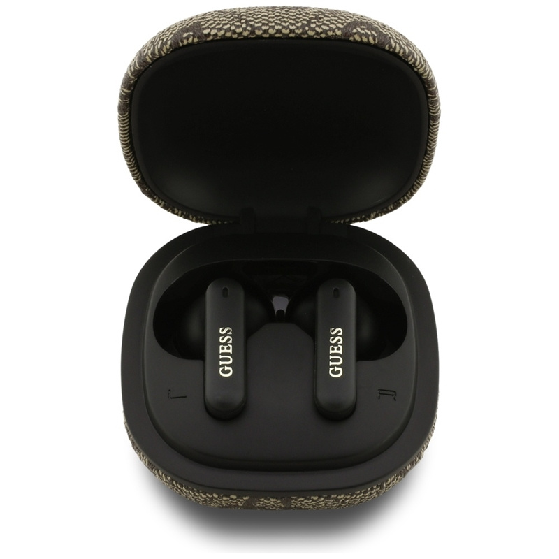 Guess 4G Classic Metal Logo - Słuchawki Bluetooth TWS ENC + etui ładujące (brązowy)