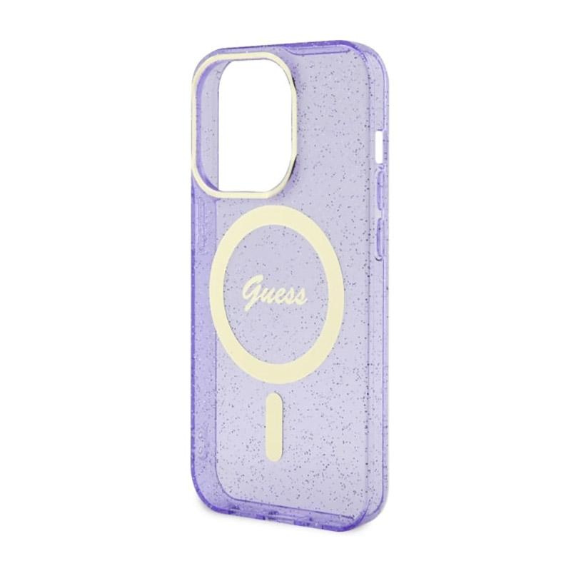 Guess Glitter Gold MagSafe - Etui iPhone 14 Pro Max (Purpurowy)
