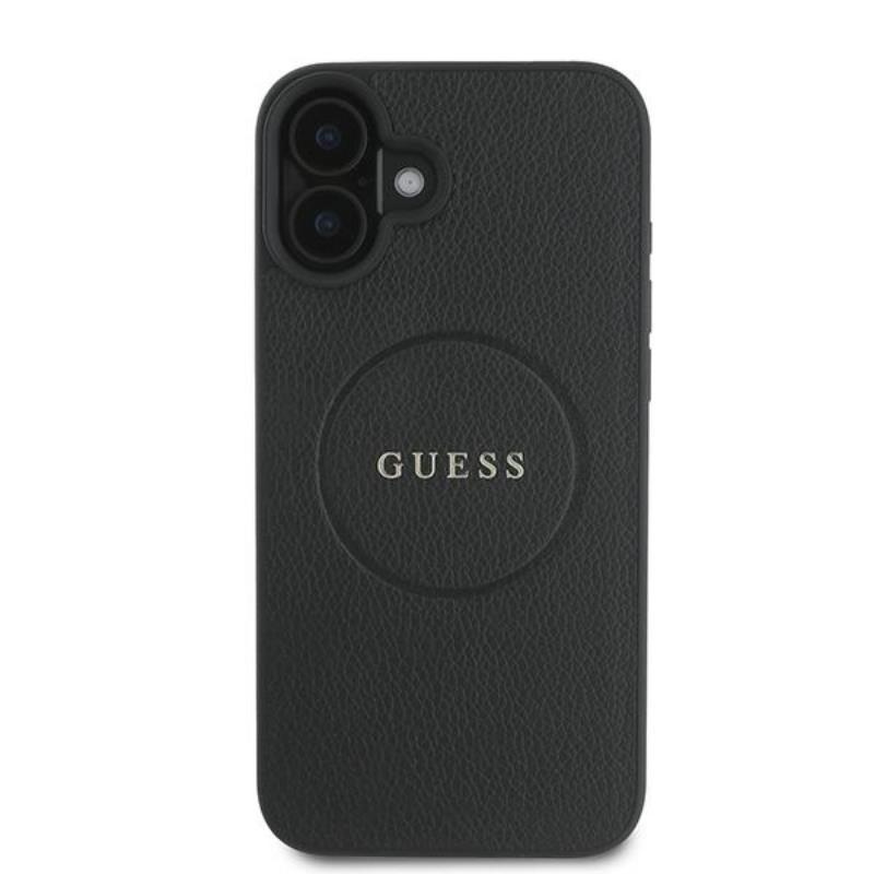 Guess Grained Ring MagSafe - Etui iPhone 16 Plus (czarny)