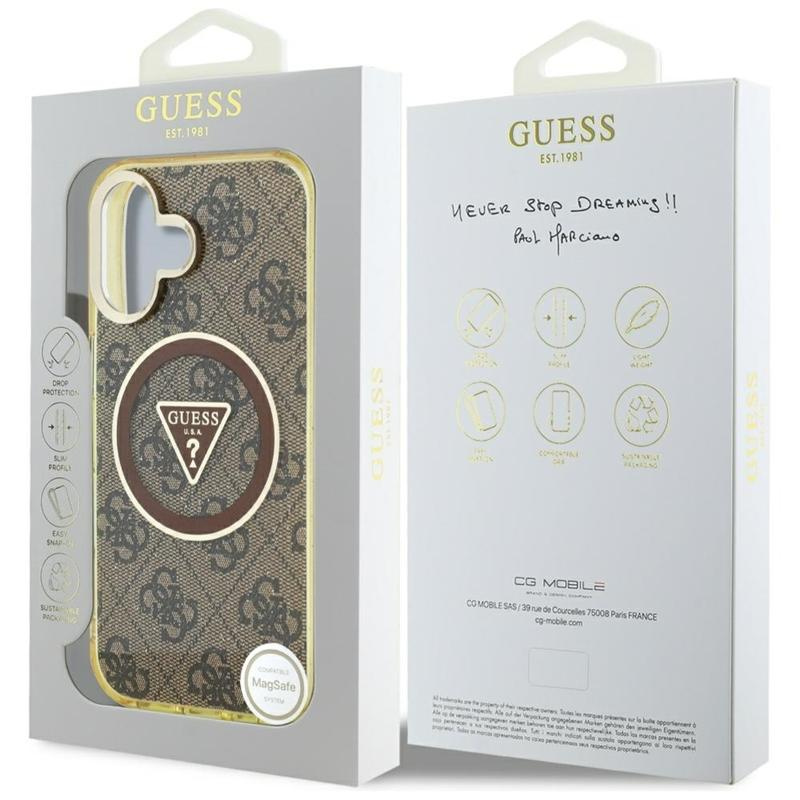 Guess IML Metal Glitter 4G Circle Triangle MagSafe - Etui do iPhone 16 (brązowy)