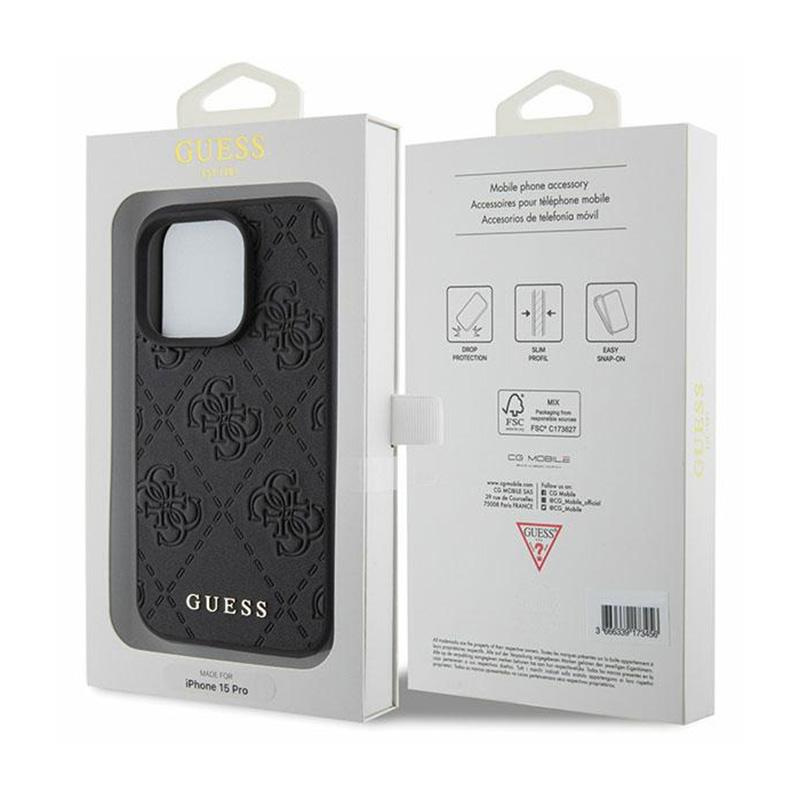 Guess Leather 4G Stamped - Etui iPhone 15 Pro Max (czarny)