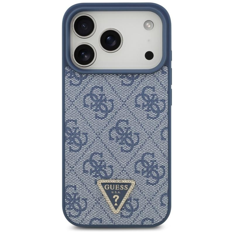 Guess Leather 4G Triangle Strass MagSafe - Etui iPhone 17 Pro (niebieski)
