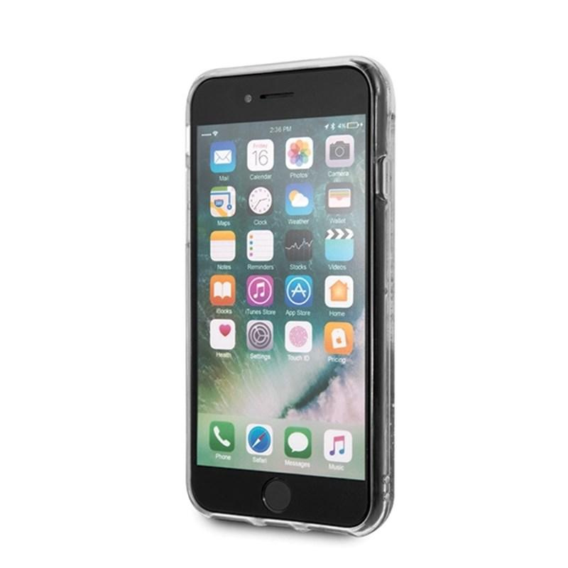 Etui należące do światowego lidera branży odzieżowej, twórcy wyszukanych i eleganckich ubrań oraz akcesoriów. Guess wyróżniający się bezkompromisową jakością i integralnością z własnym wizerunkiem, przelał na akcesoria do urządzeń mobilnych wszystko to czym zachwyca w świecie szeroko rozumianej mody. W trosce o bezpieczeństwo oraz unikatowy wygląd urządzeń mobilnych, powstała piękna kolekcja, która zachwyca estetyką, wykonaniem i stylem.Etui przeznaczono do ochrony przed porysowaniem iPhone’a, a wykonano z wytrzymałego TPU, które cechuje wysoka przezroczystość oraz smukłość. Smartfon bezpiecznie spoczywa w perfekcyjnie wykonanej konstrukcji, która osłania go z tyłu oraz po bokach w żaden sposób nie psując estetyki urządzenia. Nawiązując do wizerunku Guess, front etui u dołu posiada logo producenta, dookoła którego przemieszczają się swobodnie symbole związane z marką oraz pytajnik i serce. Aby nadać niesamowitego efektu, konstrukcja zawiera w sobie substancje z mnóstwem swobodnie pływającego brokatu, który przy najmniejszym ruchu opływa cały front etui mieniąc się i błyszcząc. Etui zapewnia dostęp do wszystkich klawiszy funkcyjnych, gniazd i portów telefonu nie ograniczając jego funkcjonalności, dzięki czemu można w pełni korzystać ze swojego smartfona.