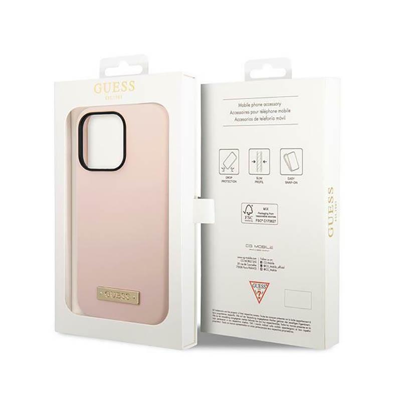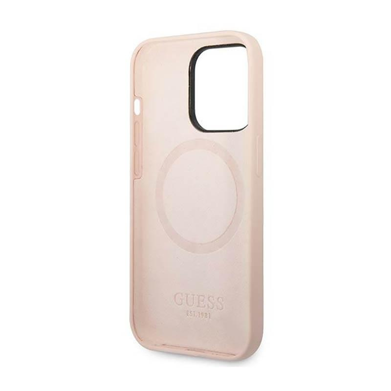 Guess Silicone Logo Plate MagSafe - Etui iPhone 14 Pro (różowy)