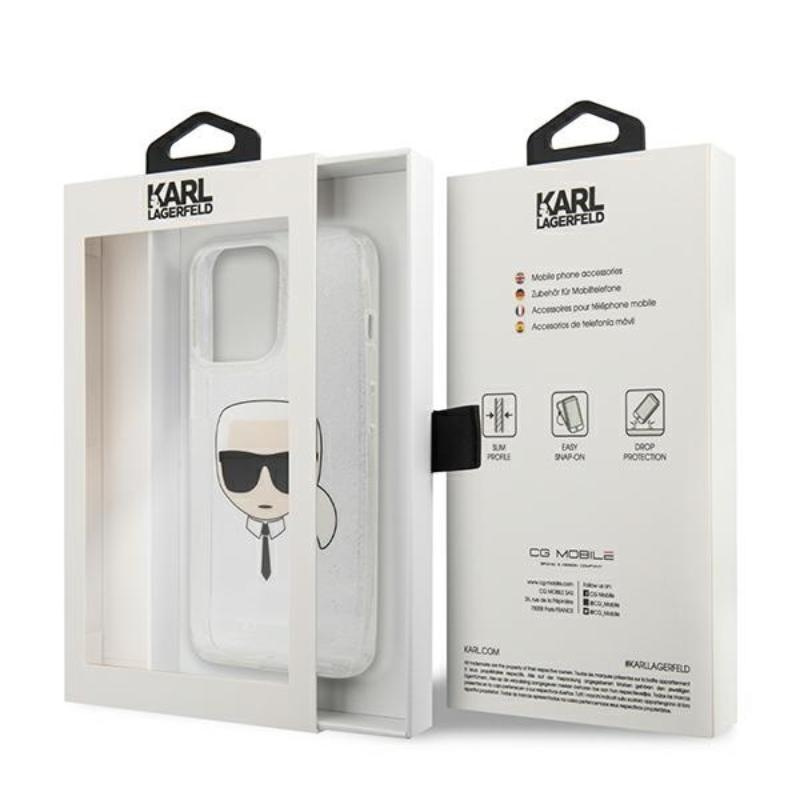 Karl Lagerfeld Karl's Head Glitter - Etui iPhone 13 Pro Max (srebrny)