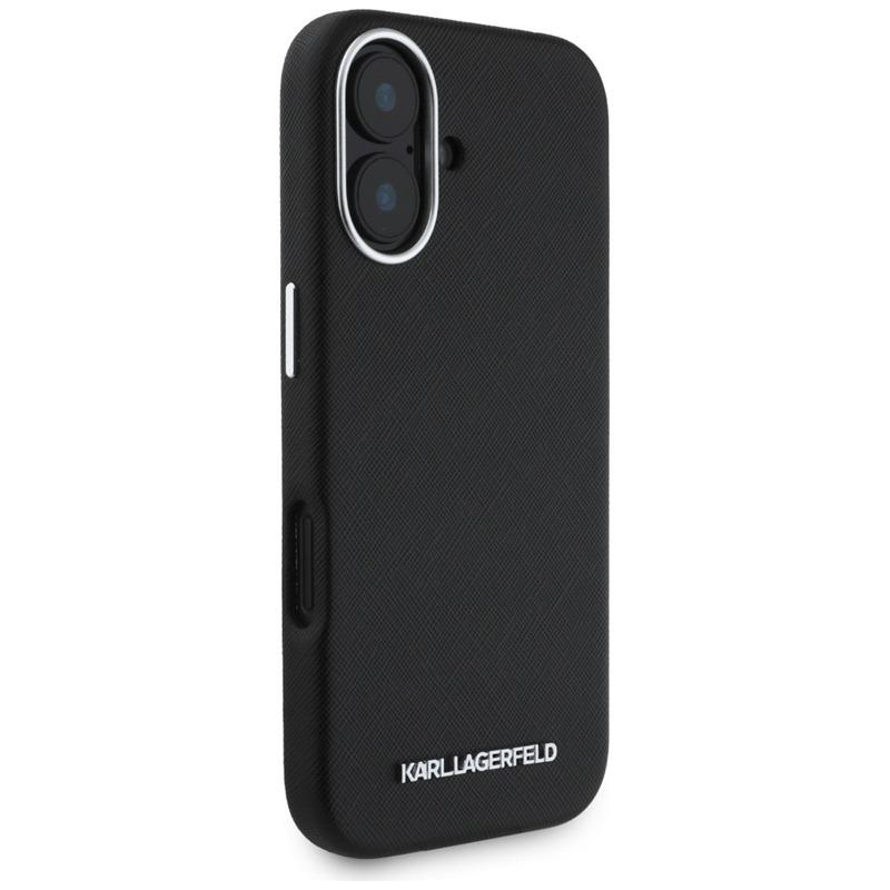 Karl Lagerfeld Saffiano Full Wrapped Elongated Metal Logo MagSafe - Etui do iPhone 16 (czarny)