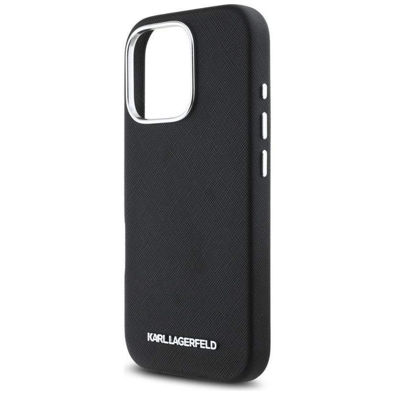 Karl Lagerfeld Saffiano Full Wrapped Elongated Metal Logo MagSafe - Etui do iPhone 16 Pro (czarny)