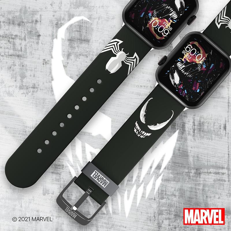 - Oficjalny pasek MARVEL z dedykowanymi tarczami dla Apple Watch to prawdziwa gratka dla wszystkich fanów Vonoma. Pasek wykonany został z wysokiej jakości silikonu odpornego na pot oraz promienie UV. W zestawie znajduje się komplet konektorów do zegarka App