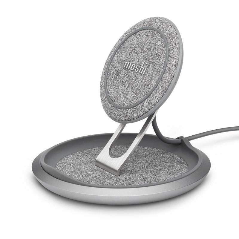 Moshi Lounge Q Wireless Charging Stand – Bezprzewodowa ładowarka indukcyjna Qi do iPhone i Android 15W (Nordic Gray)