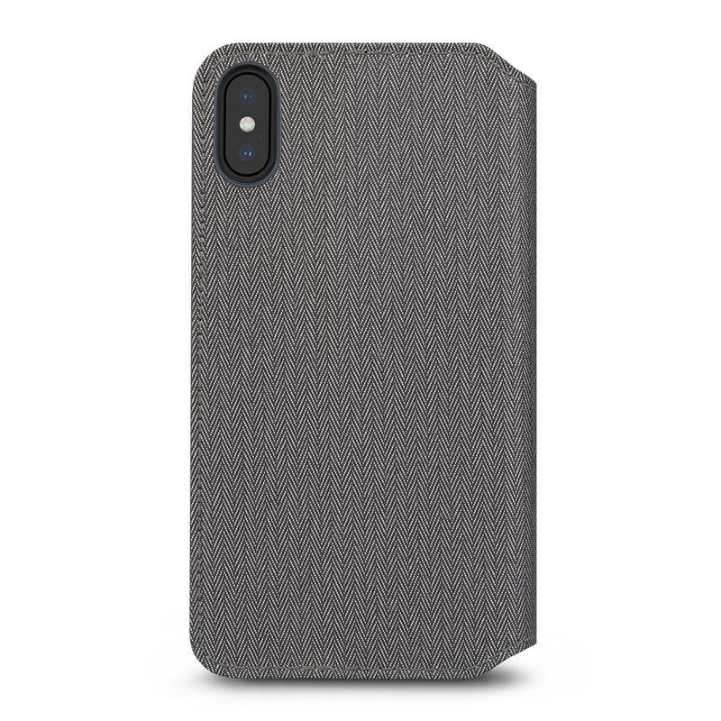 Moshi Overture - Etui iPhone Xs Max z kieszenią na karty + stand up (Herringbone Gray)
