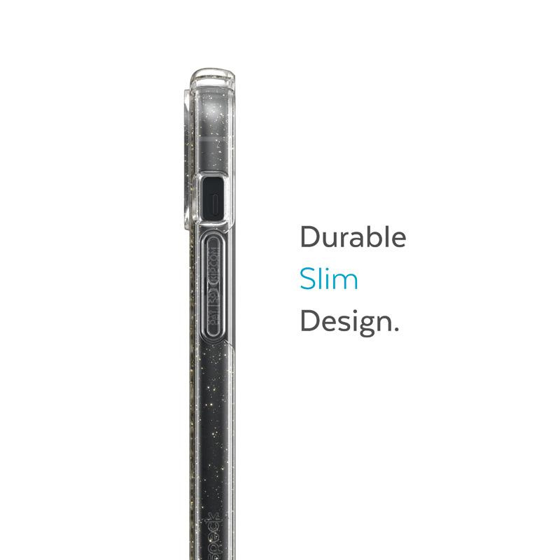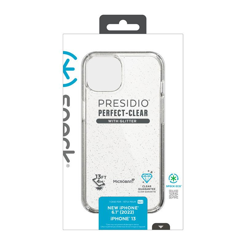 Speck Presidio Perfect-Clear with Glitter - Etui iPhone 14 / iPhone 13 z powłoką MICROBAN (Clear / Gold Glitter)