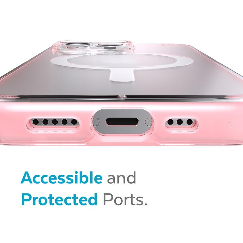 • Speck Presidio Perfect-Clear with Impact Geometry® + MagSafe to przezroczyste etui z wbudowanym magnesem, kompatybilnym z akcesoriami Apple MagSafe®.