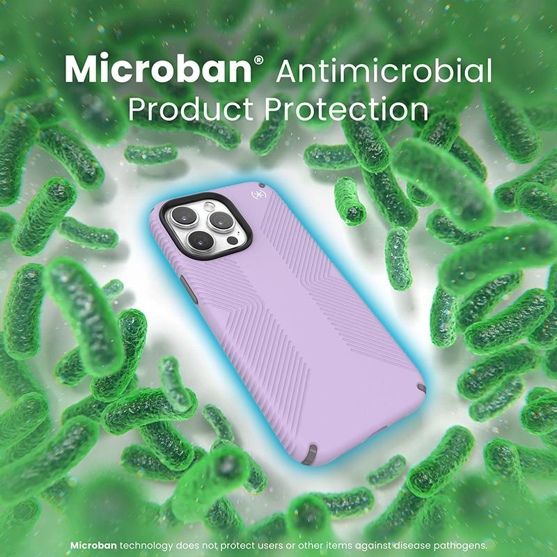 Oryginalna obudowa ochronna Speck z serii Presidio2 Grip oferuje też ochronę antybakteryjną MICROBAN® (światowy lider rozwiązań przeciwdrobnoustrojowych z szerokim portfolio ponad 25 zatwierdzonych technologii). Aktywny składnik wbudowany w strukturę etui powstrzymuje 99% bakterii, które gromadzą się na powierzchni etui. Technologia MICROBAN® zapewnia w ten sposób dożywotnią ochronę przed bakteriami powodującymi plamy i nieprzyjemne zapachy oraz działa na poziomie komórkowych, aby utrzymać czystość obudowy.